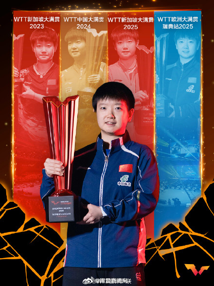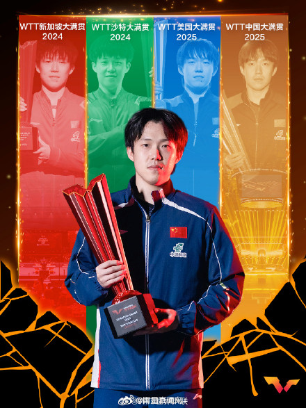据WTT世界乒联,孙颖莎成为WTT大满贯赛事单打五冠王,王楚钦成为WTT大满贯赛事单打五冠王。