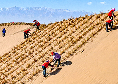 初冬时节巴丹吉林沙漠忙“锁边”